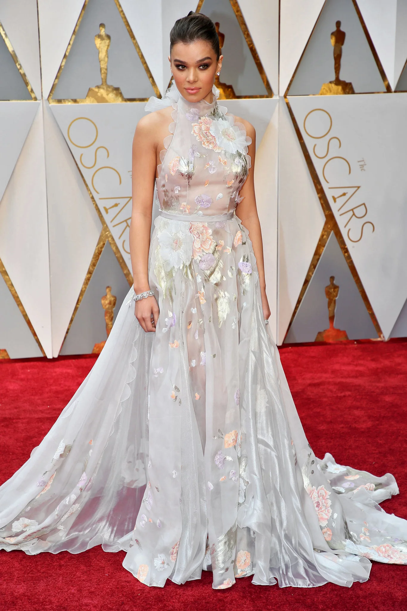 Steinfeld presented the award for Best Animated Feature Film wearing a dress fit for a fairy. The Ralph & Russo gown was made out of a silvery, translucent material and coated with flowers for a truly magical effect. Topped off with ruffles along the back of the dress for a magical finish.